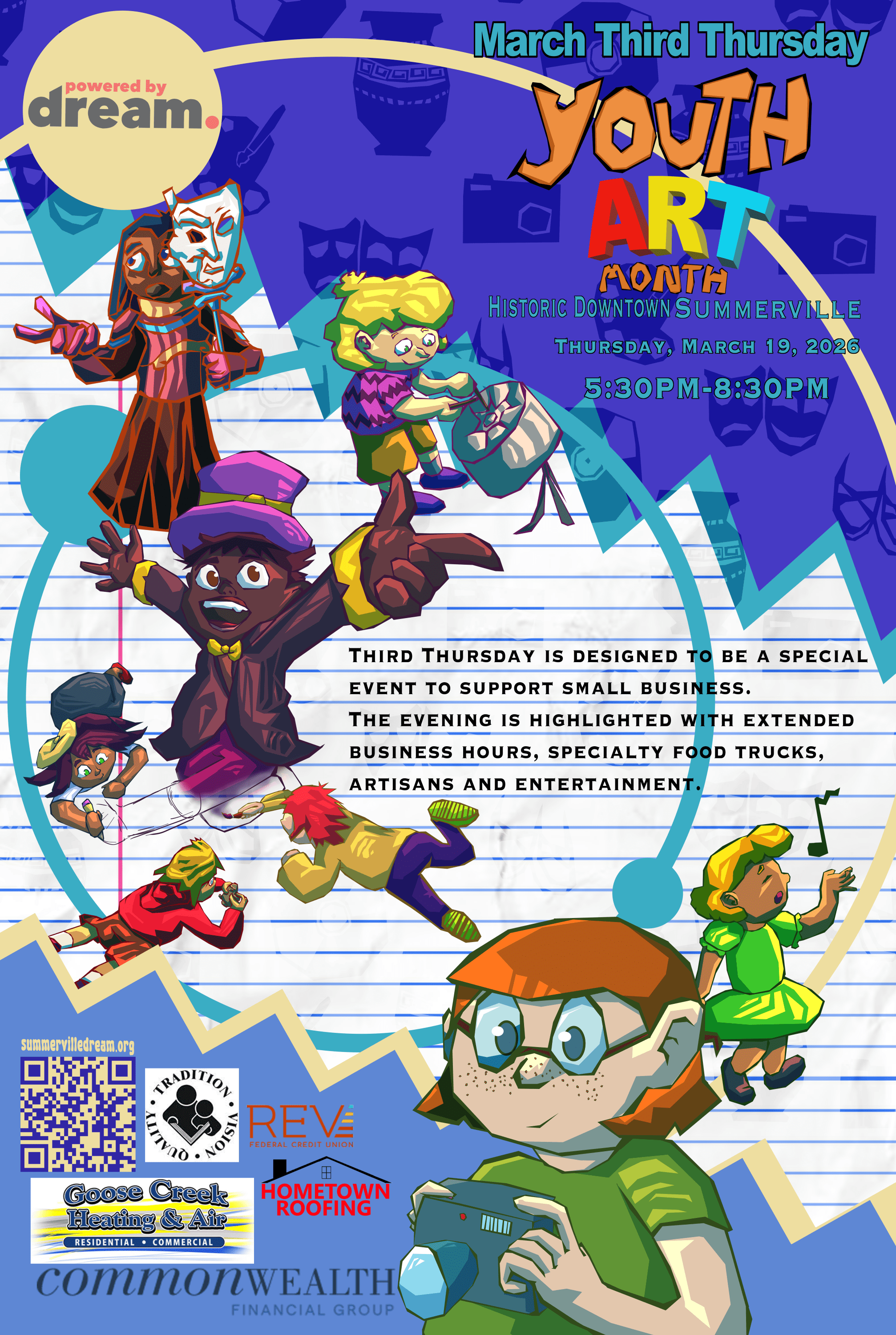 Come and join us for March's Third Thursday: Youth Art Month. Businesses please only register under the business option. If that option is not available, it is because the business booths are filled for the event. Not following this rule can result in suspension of the event.Images